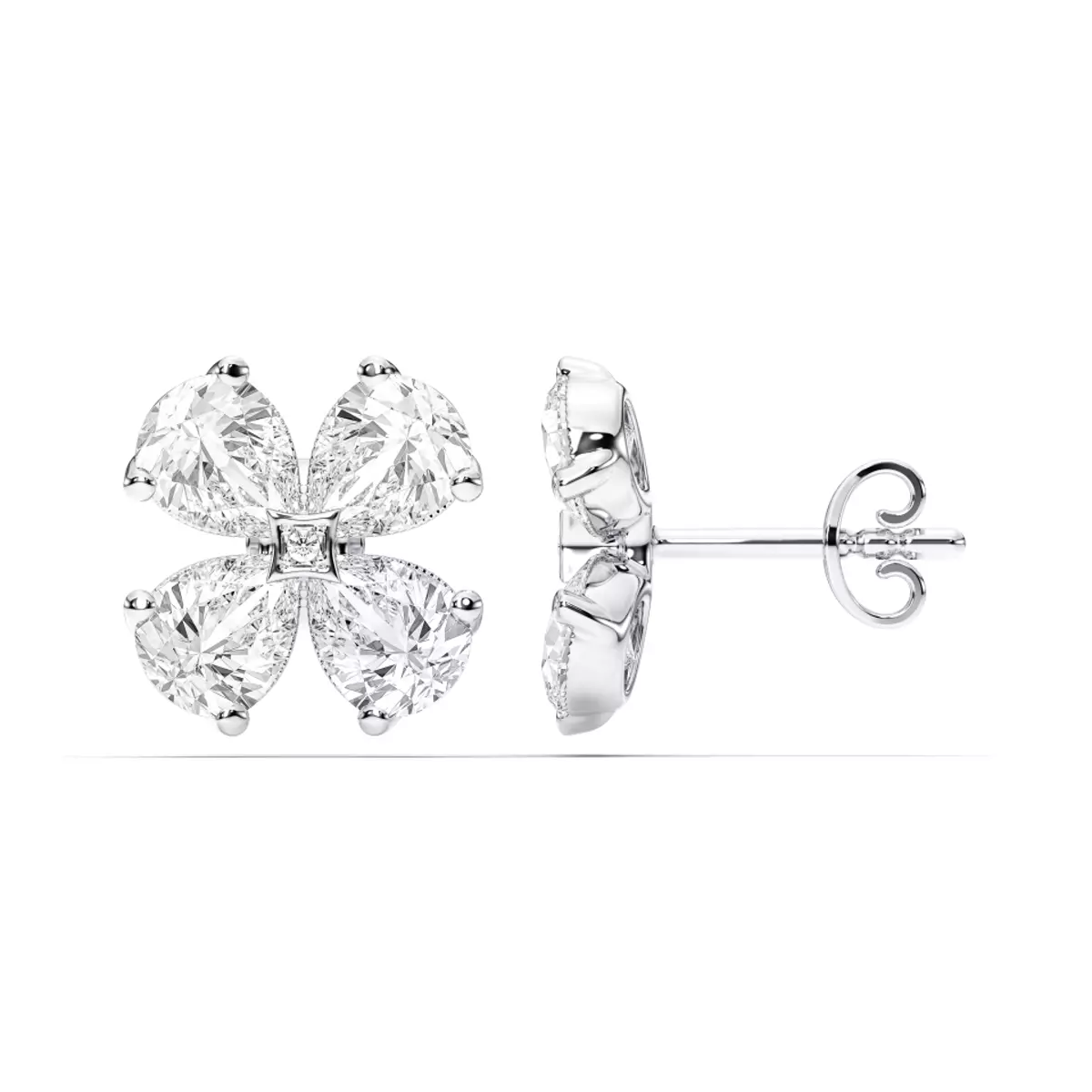 The Floral Studs are designed as a structured arrangement of stones, forming a floral silhouette. Each element is placed to create symmetry and light interaction, resulting in a refined and delicate composition.