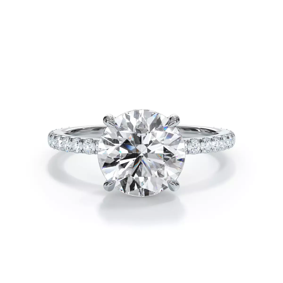 The Our Story engagement ring is built around a central stone, complemented by a balanced band that enhances its presence. The design reflects a structured and refined approach to classic engagement jewelry.