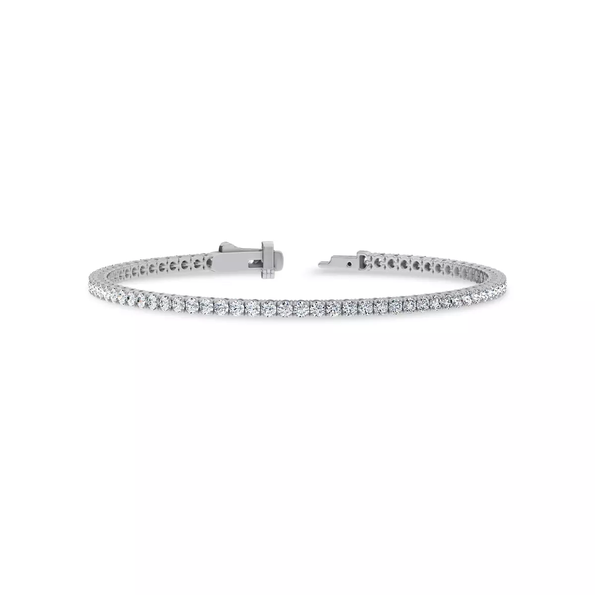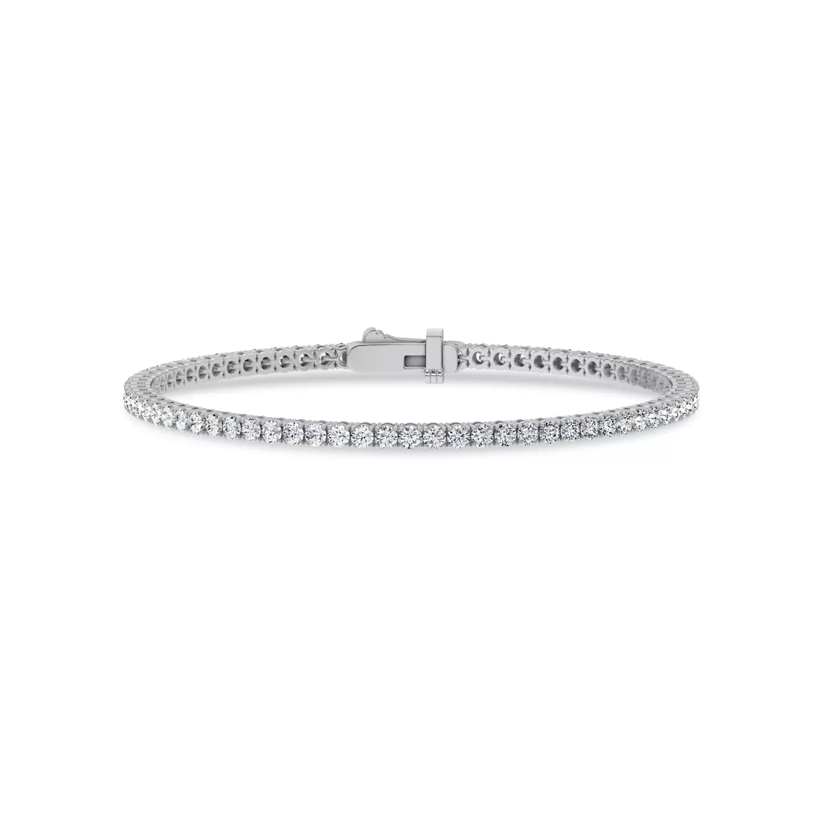The Tennis Bracelet features a sequence of round diamonds set in a clean, articulated structure that follows the natural movement of the wrist. Each stone is aligned for consistent brilliance, creating a fluid and uninterrupted line. The design is refined and minimal, with focus on proportion and clarity.