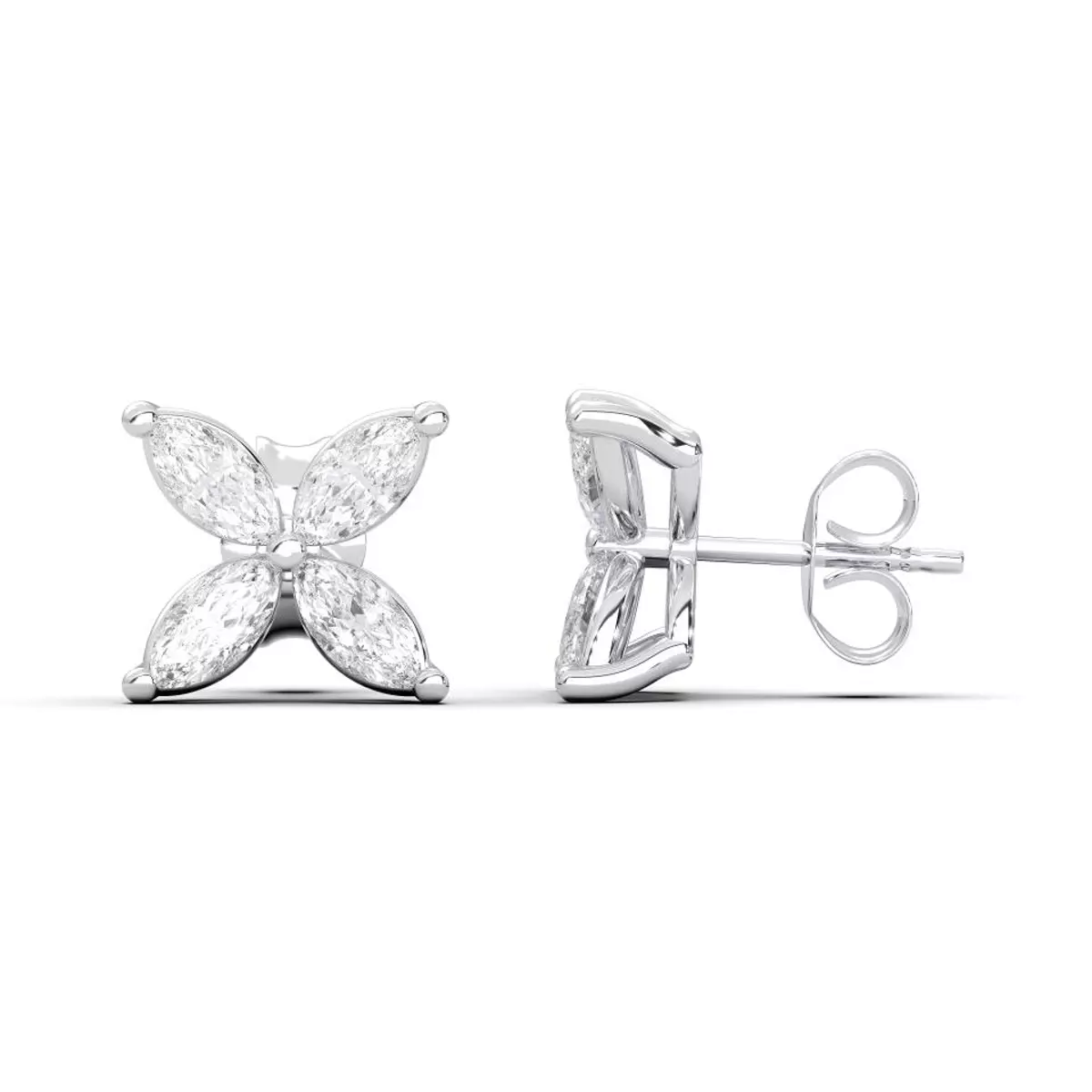 The V Diamond Studs are designed with a distinct angular silhouette, creating a sharp and modern composition. The arrangement emphasizes direction and form while maintaining balance and clarity.